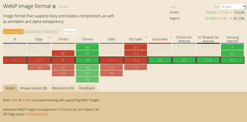 既然我们已经认识到在可能的情况下使用WebP格式是有价值的,那么很重要的一点是—它不能完全替代 JPEG 和 PNG,因为浏览器对 WebP 支持并不普遍。