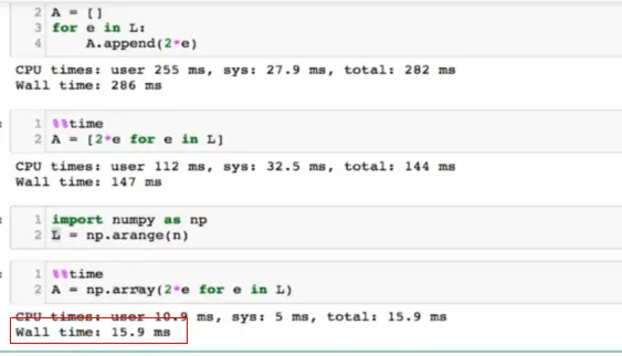 # 其实python也提供了sum操作,然而使用Numpy效率更高,差距是100多倍,完全不是一个级别的!!