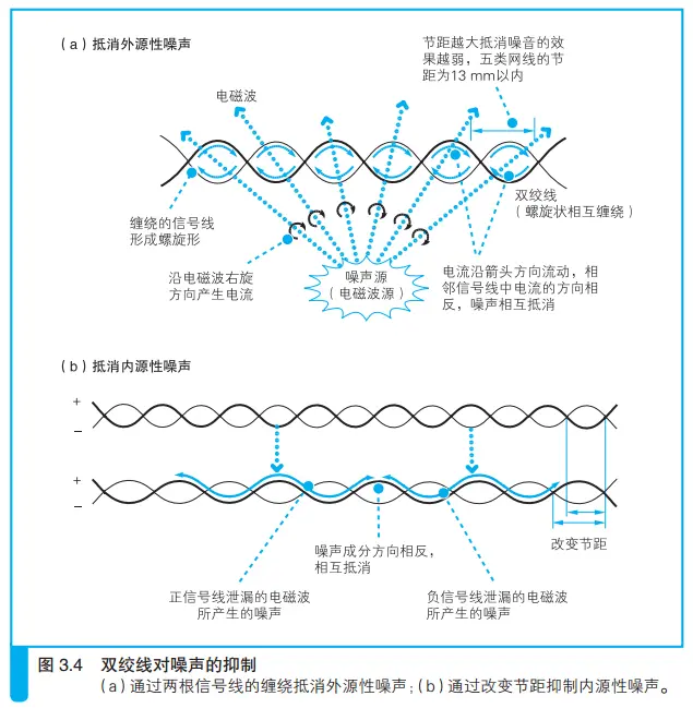 - 抵消内源性噪声。比如:从网线中相邻的信号线中泄露出来的。