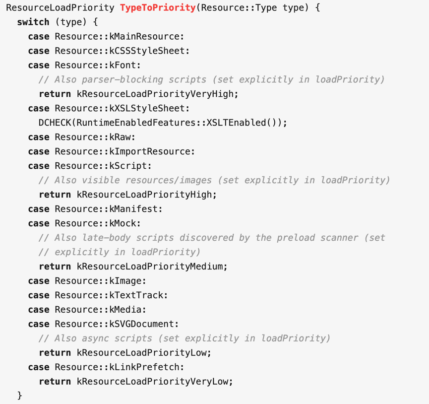 Chromium对资源的优先级是这样定义的:
