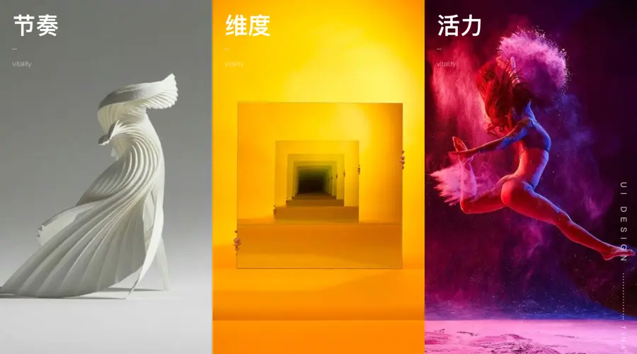 下面简单为大家介绍一下,我是如何把“呼吸”贯穿到界面设计中的。我划分为三大类:节奏,维度,活力。