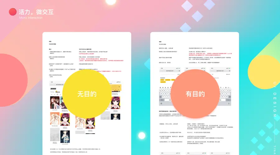 微交互虽然单指一个点,但不能想当然的指哪打哪。我们得从架构上,从全局到局部来思考;或者用用户场景出发去思考。我的做法是会以用户的视角,分场景的去思考,可能会碰到什么问题,需要得到什么解决,一定要假象自己的小白用户,并从中找出可以优化的创意点。在找到创意点之后,还需要筛选这些创意点的必要性,以及是要重点处理和略微优化就好。