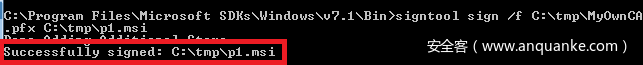 signtool sign /f C:hack.pfx C:shell.msi