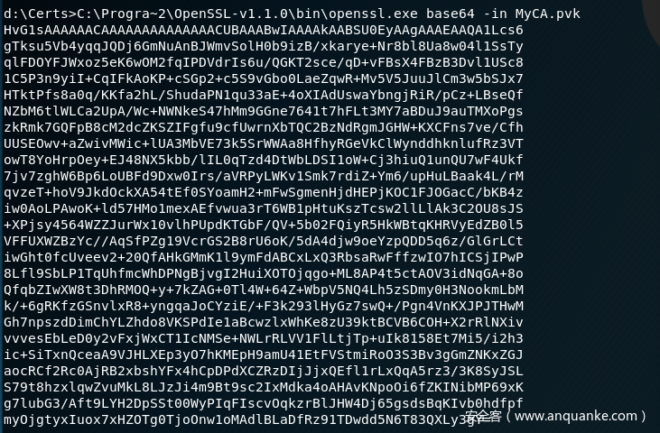 C:Progra~2OpenSSL-v1.1.0binopenssl.exe base64 -in MyCA.pvk