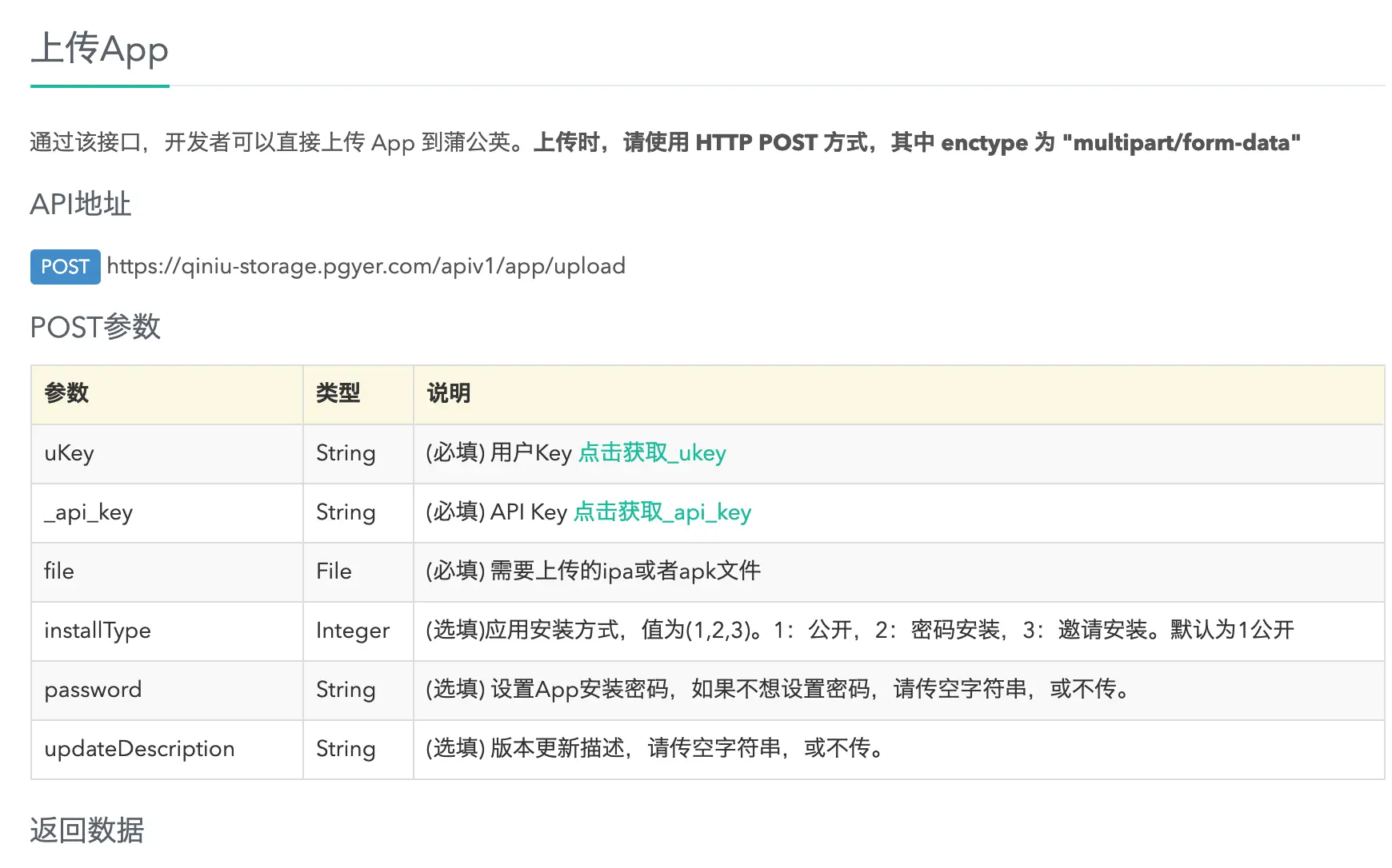 蒲公英提供了上传 App 的 API,调用这个 API 需要提供用户的uKey和api_key,这 2 个 key 在蒲公英的账号设置中可以找到。