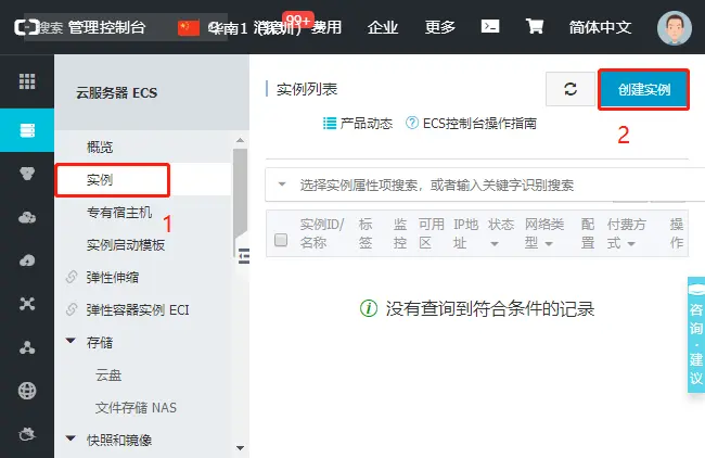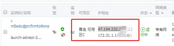打开阿里云的管理后台:点击“管理控制台”->“云服务器ECS”->“实例” 找到云服务的IP地址。