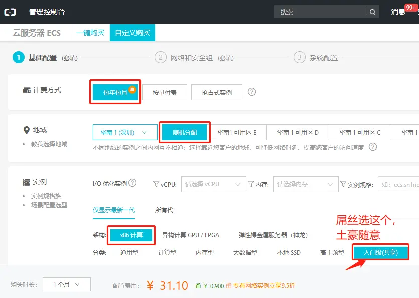 选择配置的时候,要勾选上“分配公网IPV4地址”选项。
