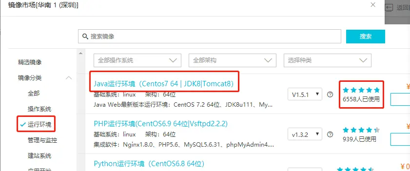 从镜像市场里选一个包含java运行环境的镜像。