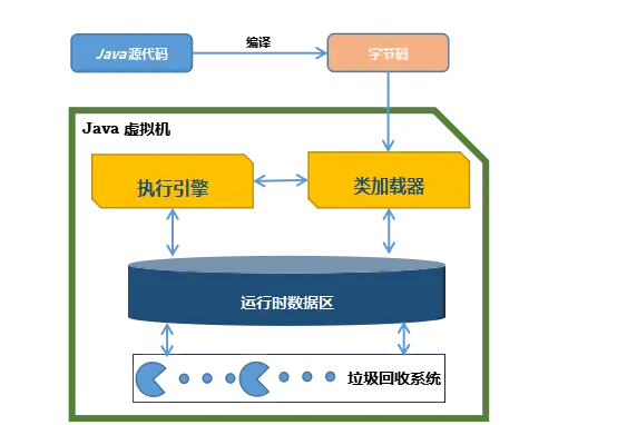 jvm内部有一个叫做类加载器的东西,它是用来在运行时根据需要加载类,这些类被加载到Java虚拟机内存中之后,虚拟机会读取并执行它里面存在的字节码指令。虚拟机中执行字节码指令的部分叫做执行引擎。Java虚拟机会进行自动内存管理。具体说来就是自动释放没有用的对象,而不需要程序员编写代码来释放分配的内存。这部分工作由垃圾收集系统负责。具体工作原理,后续我会跟大家一起学习分享。