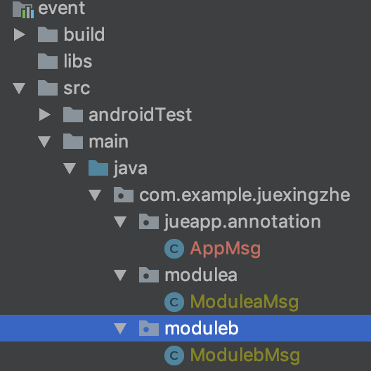 分成app/event/modulea/moduleb四个部分