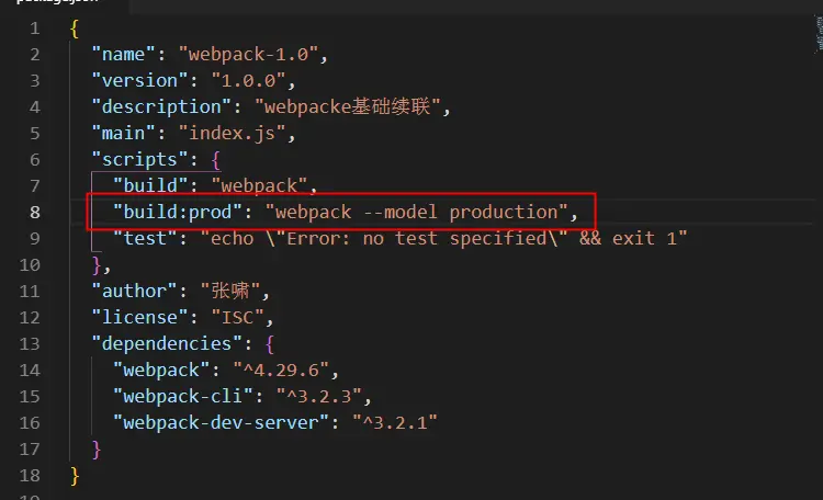 "build": "webpack --config config/webpack.dev.js" //打包命令的配置 --config表示以何种文件配置方式启动项目打包