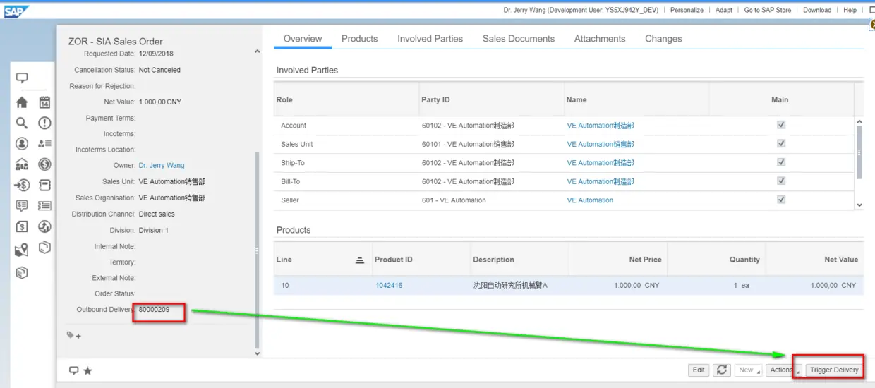 假设我想根据Sales Order的outbound delivery字段来控制这个Trigger Delivery按钮的动态显示: