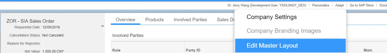 首先Adapt->Edit Master Layout进入Key user调整模式: