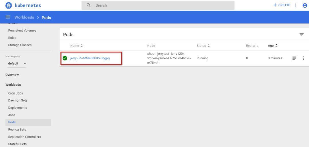 在Kubernetes web控制台里也一样能看到这个处于运行状态的pod: