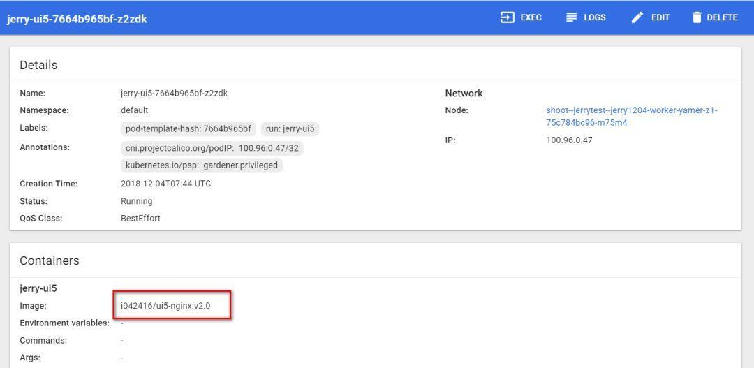 任意点开一个pod查看明细,发现其使用的docker镜像已经是v2.0版本了: