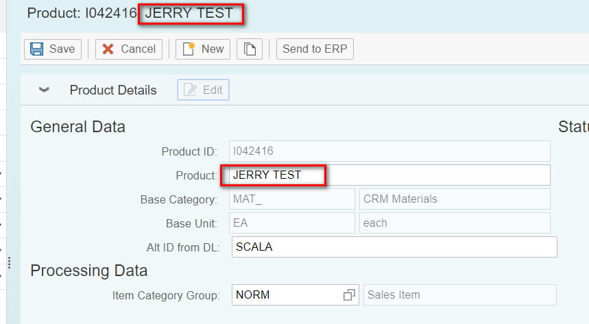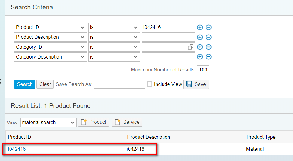 Suppose I have one product with ID I042416 which could be found in CRM WebClient UI:
