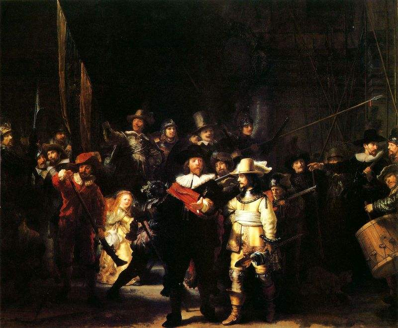 明暗对比、暗色调环境、面部强烈阴影、多人物,是的,通过这些关键词你大概也想到了荷兰画家伦勃朗的《夜巡》和意画家大利卡拉瓦乔的《以马忤斯的晚餐》。