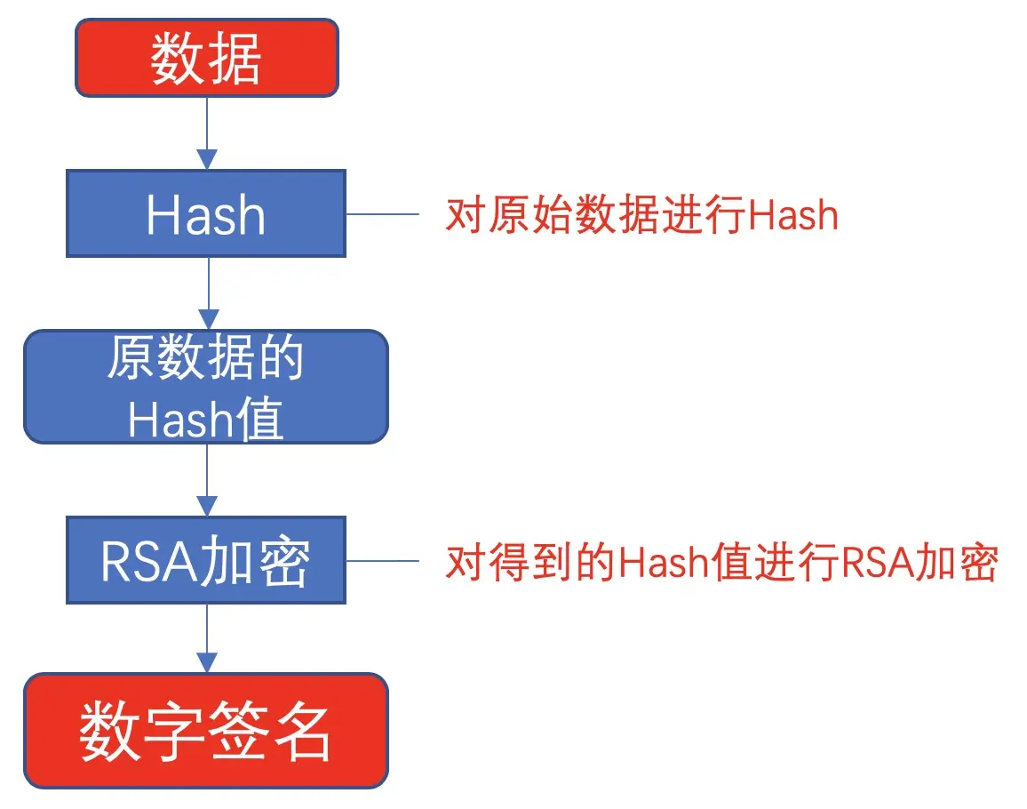 现在我们解决了服务端收到客户端发送数据的有效性,此时我们称,对原始数据Hash值进行RSA加密后的数据,是原始数据的数字签名。简单解释数字签名也就是对原始数据的Hash值进行非对称加密。