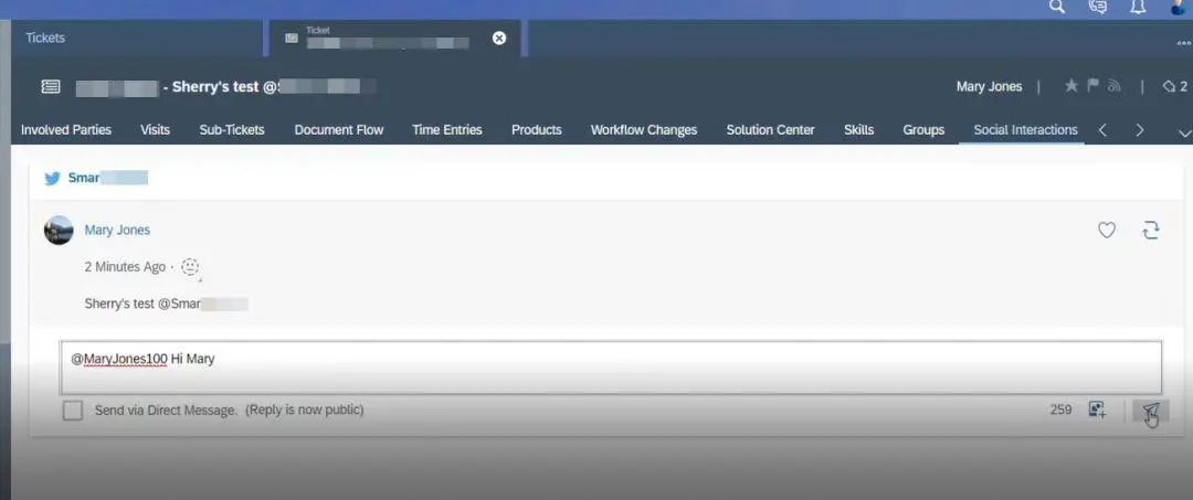 下图是Twitter网站上Sherry的抱怨被成功抓取到C4C系统后生成对应的Ticket截图: