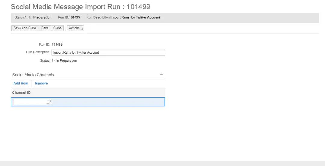 通过Administrator -> Service and Social Settings,找到Social Media, 新建一个Social Media Message Import Run,指定服务的Channel,并配置运行频率。大家可以把这个界面当成浏览器版本的SM37。