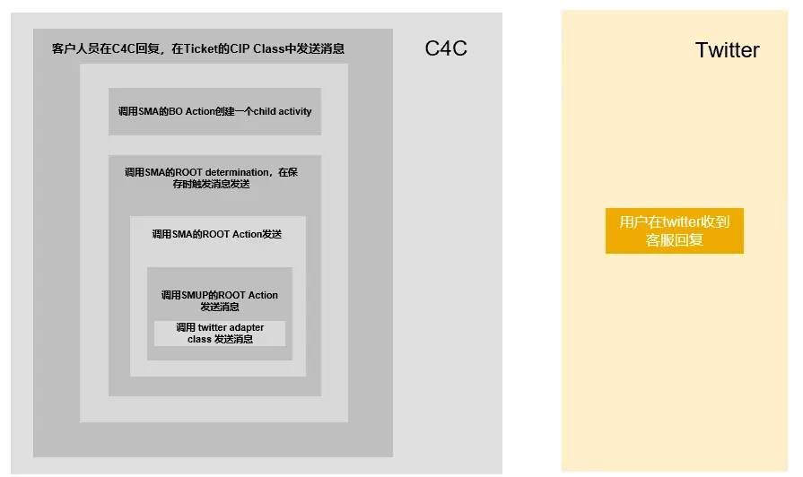 另一种场景是Outbound,即客服人员在C4C回复Ticket,回复内容会被推送到Twitter。