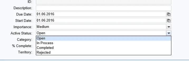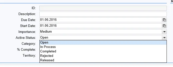 First,I create an new Opportunity in WebClientUI, I set the status with E0001( User status).