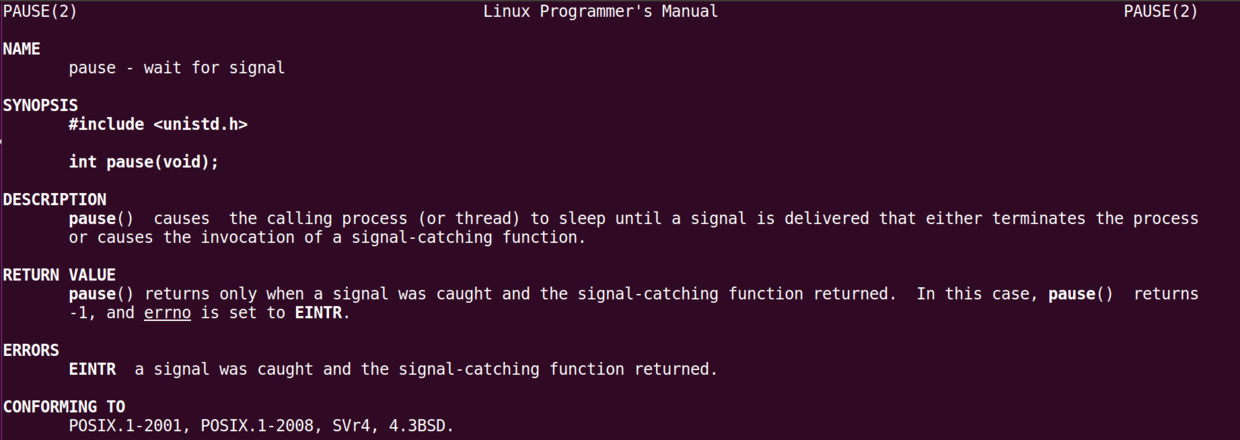 这个无限循环里执行的是一个系统调用pause,