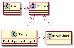 那么当我们定义好Library这个实例后,比如我们现在想要在借书之前做一个标记“书被借出了”。那么我们有几种方式可以去实现,比如我们可以直接修改Library,但可能下次又会加一个类似“哪种书被借出了”、“第几区第几排的书被借出了”类似的需求,那么我们就就要不断的去修改原有的类,或者不断的继承原有的类去修改方法,所以我们直接修改原有的类是不可行的。这时候,我们就需要一个代理类,帮助我们去实现类似的方法、对比UML类图中的Proxy: