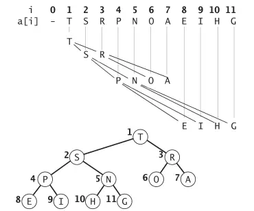 从 a[k] 向上一层,就令 k 等于 k/2 ,向下一层则令 k 等于 2k 或 2k+1
