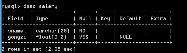 alter table salary add bonus float(5, 2) unsigned not null default 0.00;插入数据