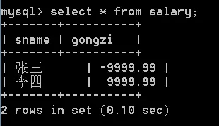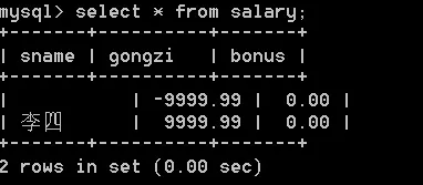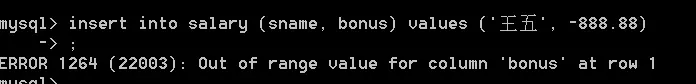 insert into salary (sname, bonus) values ('王五', -888.88);