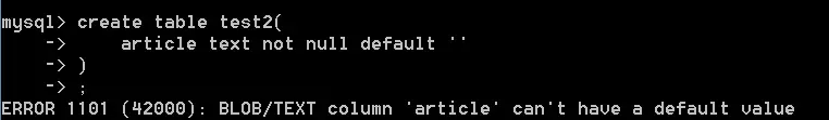 # 注意text一般用来存文章、新闻内容,声明text列时,不必给默认值,给了会报错