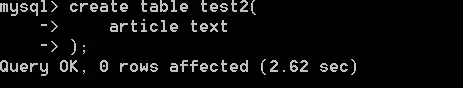 create table test2(