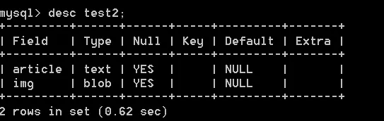 alter table test2 add img blob;6.3 日期时间类型