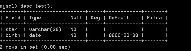 birth date not null default '0000-00-00'