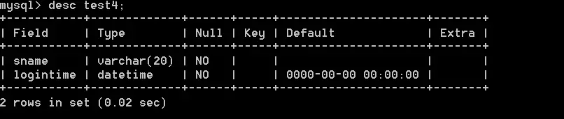 logintime datetime not null default '0000-00-00 00:00:00'
