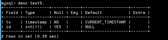 ts timestamp default CURRENT_TIMESTAMP,