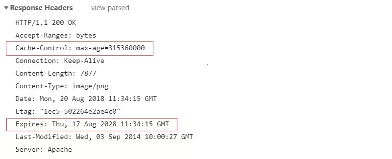服务器使用的响应头字段为 Expires ,值为未来的绝对时间(时间戳),浏览器请求时的当前时间超过了 Expires 设置的时间,代表缓存失效,需要再次向服务器发送请求,否则都会直接从缓存数据库中获取数据。
