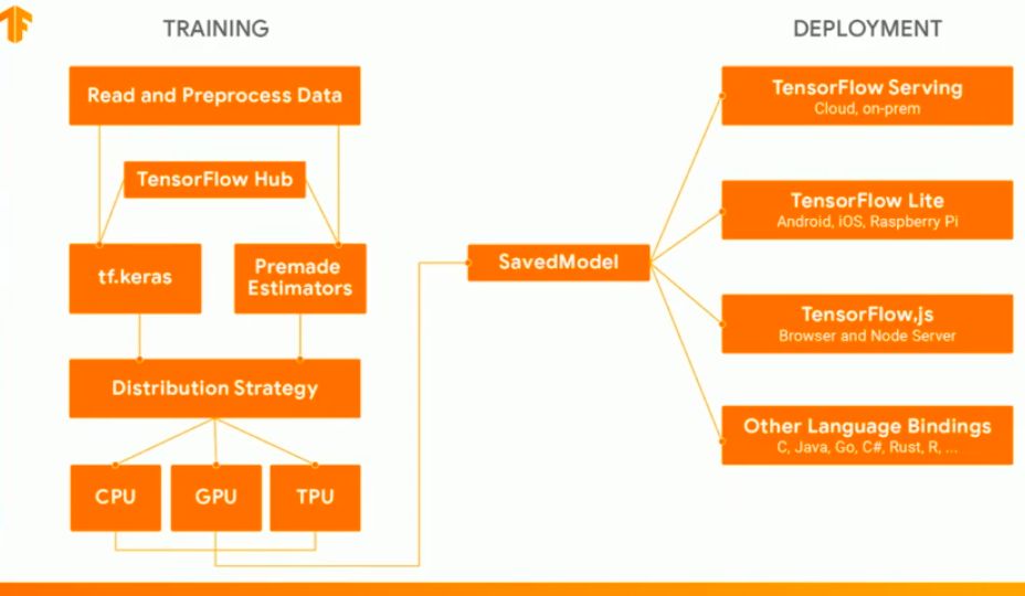 当然,TensorFlow也秉承着“哪儿都可以部署”的原则,使其在应用方面更加灵活和方便: