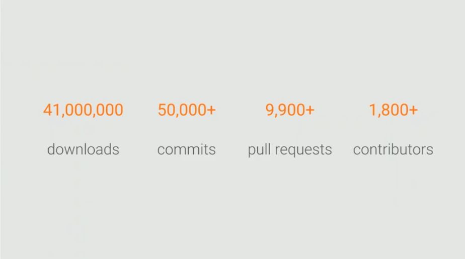 发布会还把TensorFlow目前的家底透露了一遍:目前TF在全球已经有超过4100万的下载次数,社区有超过1800多个贡献者。