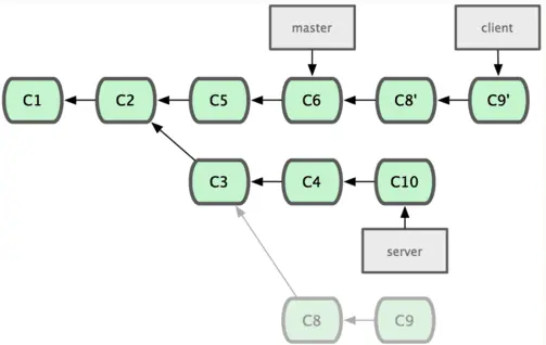 意思就是求client和server分支后的差异,然后以master为底,进行重演。这个操作以后进行master分支的快进就可以了。保证master的最新版。