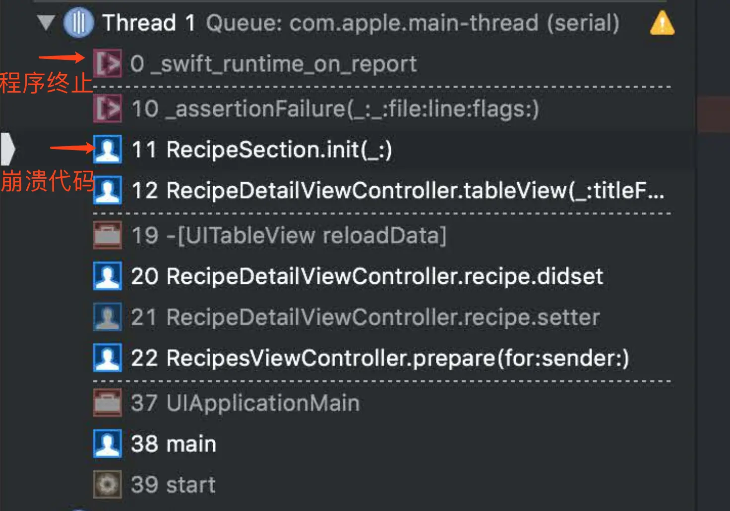 完全符号化的崩溃日志中,所有的十六进制地址都被替换为对应的函数符号。