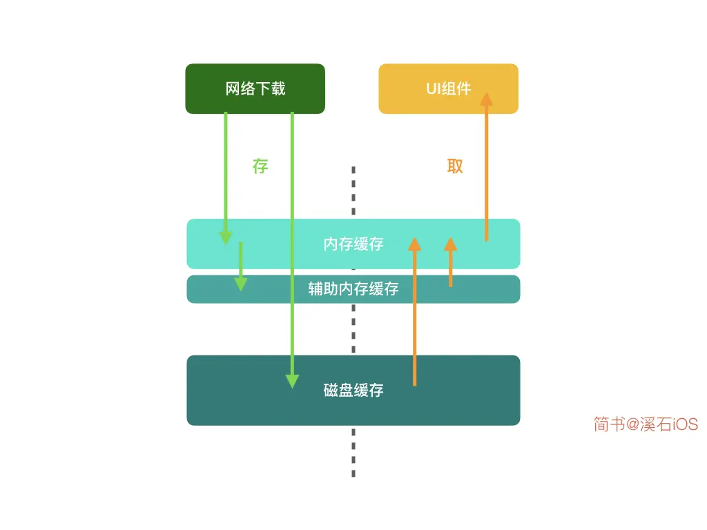 weakCache 由 NSMapTable 实现,因为普通的NSDictionary无法分别对Key强引用,对值弱引用,即 weakCache 利用对 UIImage 的弱引用,可以判断是否被缓存以外的对象使用,是本地缓存加倍顺滑的关键喔。
