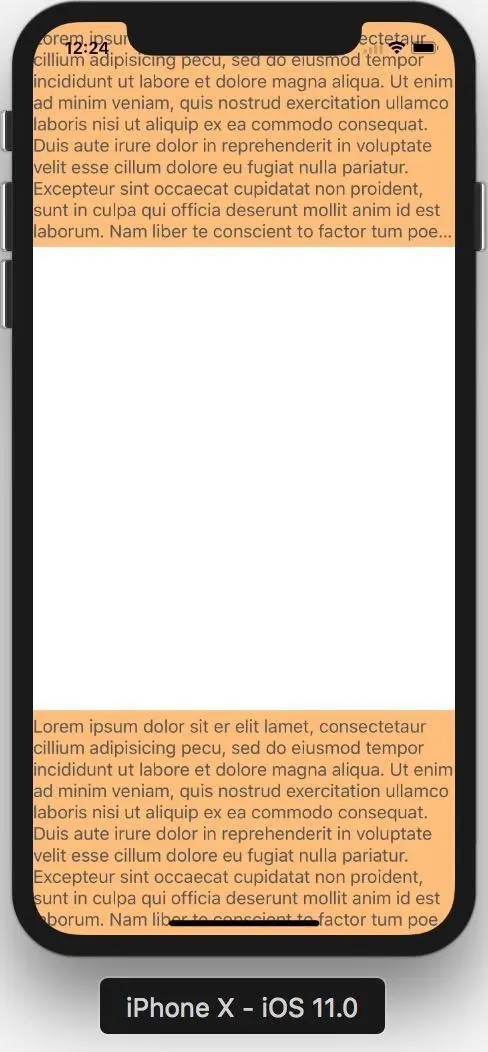 可以看出来, 子视图被顶部的刘海以及底部的 home 指示区挡住了。我们可以使用 frame 布局或者 auto layout 来优化这个地方: