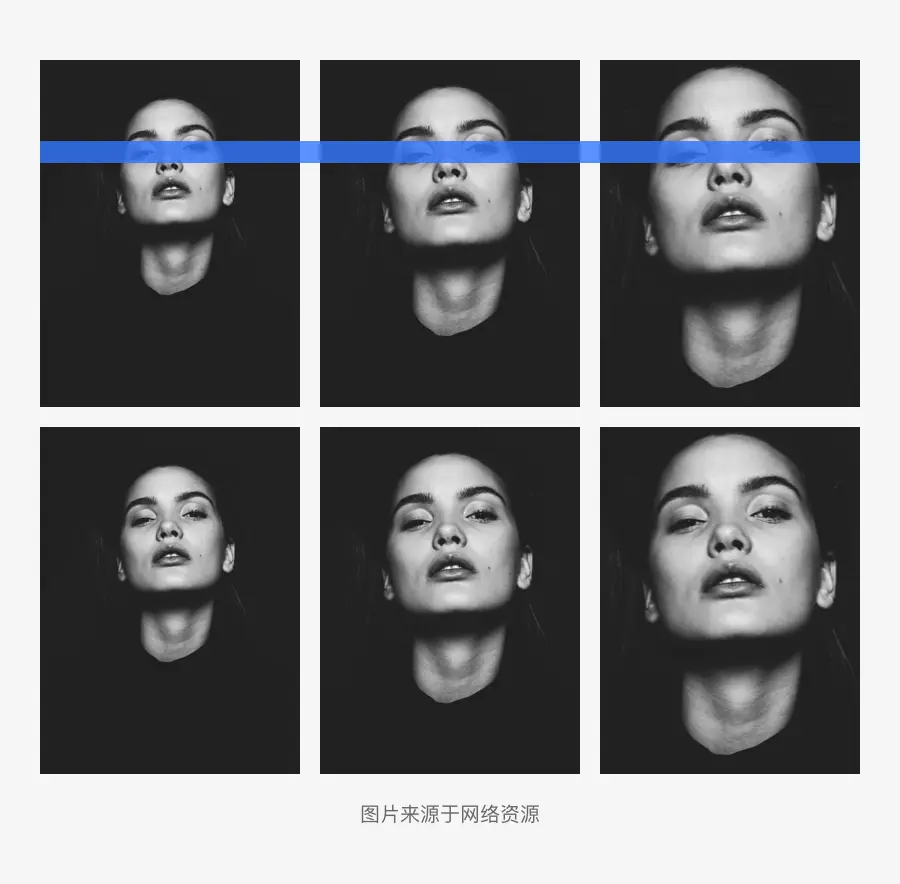 当我们在选择人物图片的时候,一张特写镜头能传达一种眼神与眼神交流的感觉,在进行裁切的时候要以视平线为准进行缩放裁切,可以保留眼神的交流感。图片放得越大,眼神的交流感就会越强。