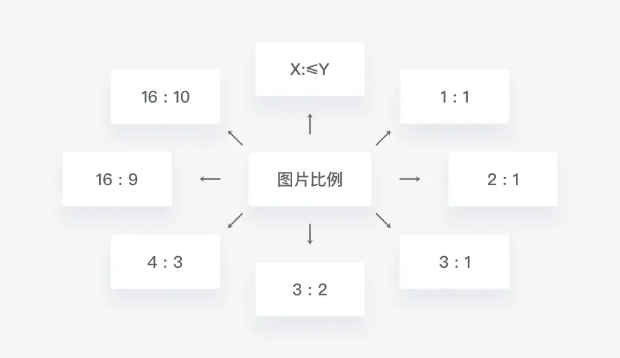 通过体验一些主流的产品,我们会发现一些比较常用的图片比例,如 1:1、2:1、3:1、3:2、4:3、16:9、16:10 等等;也会发现一些打破常规比例的设计,我们需要分析它们的性格,结合自身产品的特点,才能在自己的产品设计中合理的加以运用。