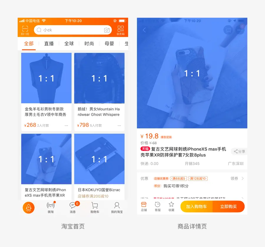 1:1 的图片比例是比较常见的一种设计比例,利用此长宽比更容易将构图归整得简单,突出主体的存在感。常用于产品展示、头像、特写展示等场景,在电商类产品中尤为常见,如:淘宝、网易严选、网易考拉等。