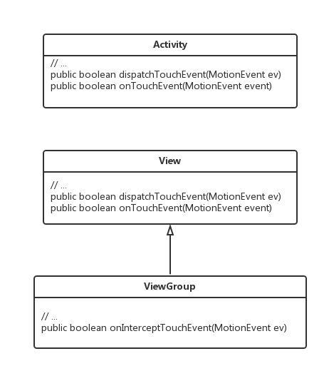 在 Android UI 开发中,经常涉及与 touch(触摸)事件和手势,最经常使用的点击事件(OnClickListener)也与 touch 事件相关。因此,理解 touch 事件在 View 层级中的传递机制尤为重要。然而,onInterceptTouchEvent、onTouchEvent、onTouchListener 等一系列接口方法很容易让人混淆。