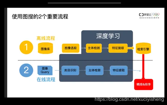 1.要建索引库。客户要把所有图片离线上传,把图片库传到阿里云上面做一个特征的提取,提取之后我们会建立一个检索引擎。