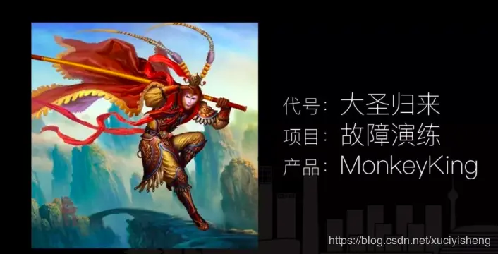 故障演练项目立项(GOC+中间件),重新设计架构和产品流程,确定产品名为MonkeyKing,在交易和中间件链路尝试演练。MonkeyKing是中国美猴王的意思,看重的是孙悟空高强的本领(火眼精金、七十二变)和极具反叛的精神来,希望用一种创新的思路来保证稳定性。